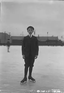 ![]() Andreas Krogh at Bislett Stadion, Kristiania (later Oslo) 24. January 1909.  | ||||||||||||||