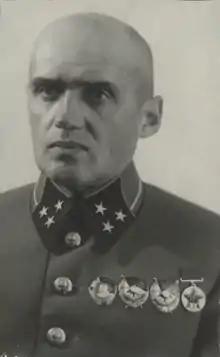 Andrey Kirillovich Smirnov (August 27, 1895, Saint Petersburg, Russian Empire – October 8, 1941, near the village of Popovka[2] (according to other sources, near the village of Alekseevka),[1] Zaporozhye Oblast) was a Soviet military commander, Commander of the 18th Army, during Great Patriotic War, Lieutenant General (June 4, 1940).