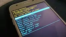 The Android recovery mode is a mode of Android used for installing updates.[1][2] It consists of a Linux kernel with ramdisk on a separate partition from the main Android system.