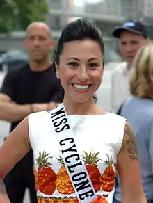 Angie was crowned Miss Cyclone in 2007 in honor of the historic roller coaster the Coney Island Cyclone. As a Coney Island resident, she has been very active in the fight to save them from rezoning that would jeopardize the amusement district. Angie was crowned "The Reigning Queen of Burlesque, the winner of the Miss Exotic World Pageant in 2008" at the Burlesque Hall of Fame reunion at the Palms Hotel in Las Vegas.[4] Other awards include, "The Best Body in Burlesque" - 2007 New York Burlesque Festival, "#1 Burlesque Attraction in the Nation" - AOL.com, "Best NY Based Dance Company" - Show Business, "Hottest Burlesque Troupe" - Village Voice. She was recently featured on the PBS Great Performances series with Lady Gaga and Tony Bennett for their release of Cheek to Cheek and has collaborated with retailer Secrets in Lace to release a collection of vintage inspired dresses.
