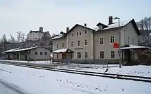 The Annaberg-Buchholz lower station is the original terminus of the Chemnitz–Annaberg line. The once extensive facilities of the station were dismantled during the reconstruction of the line and now has only two tracks. The impressive station building is now unused.