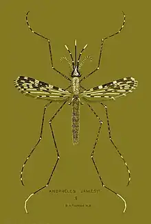 Anopheles (Cellia) jamesii is a species complex of mosquito belonging to the genus Anopheles. It is found in India, and Sri Lanka,[1] Bangladesh, Cambodia, China, Laos, Malaysia, Myanmar, Nepal, Thailand, and Vietnam. It is a potential natural vector of bancroftian filariasis in Sri Lanka.[2]