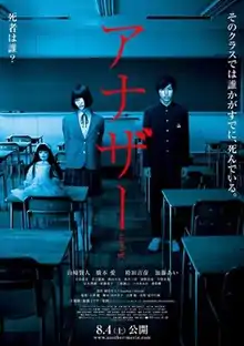 Another (Japanese: アナザー, Hepburn: Anazā) is a 2012 Japanese school mystery horror film directed by Takeshi Furusawa, starring Kento Yamazaki, Ai Hashimoto, Yoshihiko Hakamada and Ai Kato and based on the novel of the same name by Yukito Ayatsuji.[2] It was released in Japan by Toho on 4 August 2012.[3]