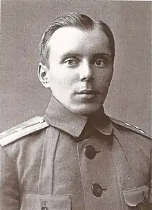 After World War I started, in 1915 he enlisted as a volunteer of the Imperial Russian Army. After a few months he was sent to the Moscow military school, graduating as a Praporshchik, after which he was assigned to the 57th Infantry Regiment in Tver. In 1916 he completed the Gatchina machine gunner's school and promptly returned to his regiment.[1][2]