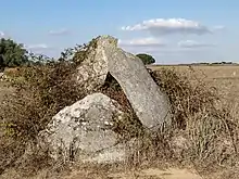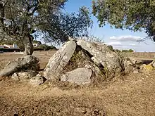 The Antas da Valeira are two Chalcolithic dolmen, or burial chambers, about 100 metres apart, close to the village of Nossa Senhora da Graça do Divor in the Évora district of the Alentejo region of Portugal. Situated in a farm field about one kilometer from the Vale Maria do Meio Cromlech and ten kilometers from the notable megalithic complex of the Almendres Cromlech, these dolmen are among numerous megalithic sites identified in the Évora area.[1] These two monuments have yet to be studied by archaeologists and are in a poor condition.[2][3]