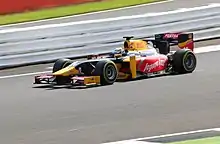 Giovinazzi went eight races without scoring points until he scored his first at the Austrian Grand Prix, finishing 10th.[31] It was the first points finish for an Italian driver in Formula One since Vitantonio Liuzzi finished sixth at the 2010 Korean Grand Prix. The next race in Britain saw his first retirement of the season, after a mechanical problem caused him to spin out into a gravel trap.[32] He crashed out on the last lap of the Belgian Grand Prix, having been running in ninth place. It later emerged that the crash caused Alfa Romeo to consider Giovinazzi's future with the team, with team principal Frédéric Vasseur saying "We had a tough discussion with Antonio, because these kind of things can decide your career. We were thinking about the future."[33] At this stage of the season, Giovinazzi had collected one point, whilst teammate Räikkönen had scored 31.
