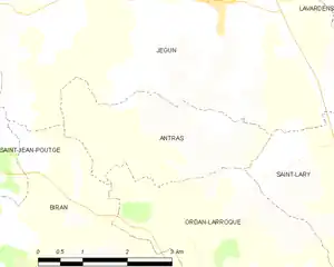 Antras is located in the canton of Gascogne-Auscitaine and in the arrondissement of Auch.