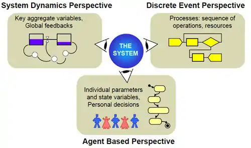 AnyLogic is a multimethod simulation modeling tool developed by The AnyLogic Company (former XJ Technologies).[4] It supports agent-based, discrete event, and system dynamics simulation methodologies.[5] AnyLogic is cross-platform simulation software that works on Windows, macOS and Linux.[5] AnyLogic is used to simulate: markets and competition,[6] healthcare,[7][8] manufacturing,[9] supply chains and logistics,[10][11] retail,[12][13] business processes,[14] social [15] and ecosystem dynamics,[16] defense,[17] project and asset management,[18] pedestrian dynamics [19] and road traffic,[20] IT,[21] aerospace.[22]