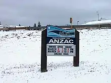 Anzac was named for the Australian and New Zealand Army Corps during World War I, when the Alberta and Great Waterways Railway was being built from Carbondale to Waterways.[5]