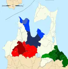 The Aomori metropolitan area (青森都市圏, Aomori toshi-ken), also known as the Tōsei area (東青地域, Tōsei chiiki)[2] is a metropolitan region in the Japanese prefecture of Aomori that includes the city of Aomori and its surrounding satellites, Hiranai, Imabetsu, Sotogahama, and Yomogita. The metropolitan area is defined as the Aomori Urban Employment Area by the Statistics Bureau of Japan (SBJ) and the Center for Spatial Information Service of the University of Tokyo.[3]