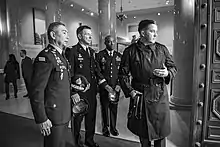 Apirat Kongsompong (Thai: อภิรัชต์ คงสมพงษ์; RTGS: Aphirat Khongsomphong; born 23 March 1960) was the Commander in Chief of the Royal Thai Army from 1 October 2018 to 30 September 2020.[2] He currently serves as the Vice-Chamberlain of the Royal Household Bureau and the deputy director of the Crown Property Bureau. He held many important positions throughout his career including chairman of the board of directors of Government Lottery Office,[3] Independent Director at Bangchak Petroleum Public Co.,[4][5][6] Member of the National Legislative Assembly,[7] Secretary of the National Council for Peace and Order, and member of the Senate.