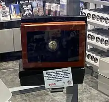 - Gilkes, Paul (January 18, 2019). "Proof 5-ounce silver dollar to cost $224.95 when it goes on sale starting Jan. 24". Coin World. Amos Pres. Archived from the original on July 20, 2021. Retrieved February 10, 2019.