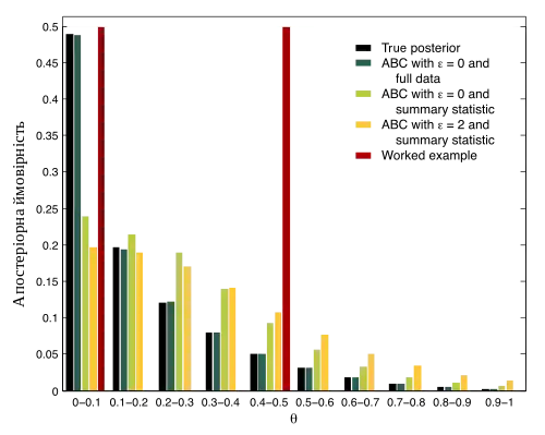 Although Diggle and Gratton's approach had opened a new frontier, their method was not yet exactly identical to what is now known as ABC, as it aimed at approximating the likelihood rather than the posterior distribution. An article of Simon Tavaré et al.[7] was first to propose an ABC algorithm for posterior inference. In their seminal work, inference about the genealogy of DNA sequence data was considered, and in particular the problem of deciding the posterior distribution of the time to the most recent common ancestor of the sampled individuals. Such inference is analytically intractable for many demographic models, but the authors presented ways of simulating coalescent trees under the putative models. A sample from the posterior of model parameters was obtained by accepting/rejecting proposals based on comparing the number of segregating sites in the synthetic and real data. This work was followed by an applied study on modeling the variation in human Y chromosome by Jonathan K. Pritchard et al.[8] using the ABC method. Finally, the term approximate Bayesian computation was established by Mark Beaumont et al.,[9] extending further the ABC methodology and discussing the suitability of the ABC-approach more specifically for problems in population genetics. Since then, ABC has spread to applications outside population genetics, such as systems biology, epidemiology, and phylogeography.