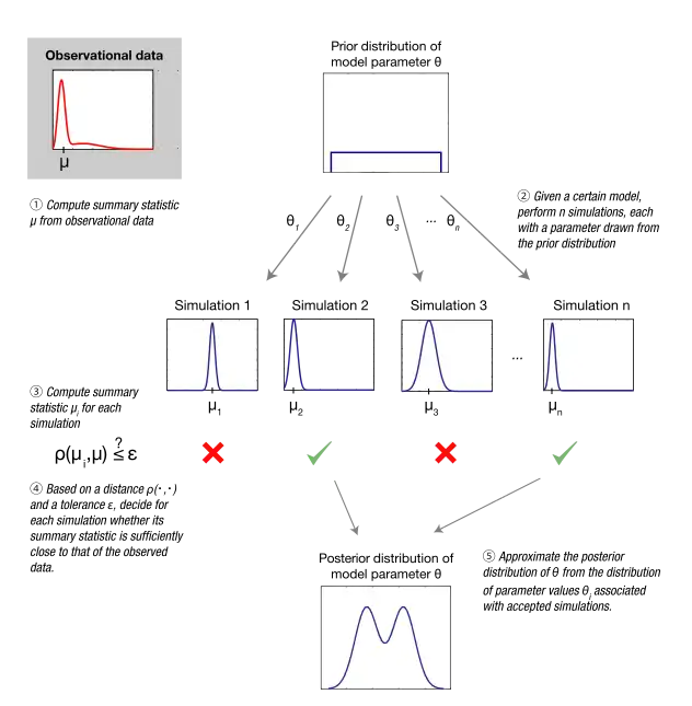 Approximate Bayesian computation (ABC) constitutes a class of computational methods rooted in Bayesian statistics that can be used to estimate the posterior distributions of model parameters.