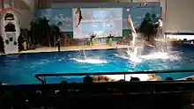 The aquarium has a large dolphin and walrus show. Many shows are held in Ocean arena and are hosted by the Eastern European Synchronized Swimming Team. [3]