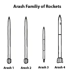 The Arash (Persian: آرش, From Iranian Arash) is a series of 122mm unguided artillery rocket developed by Iran.[2] It is a copy of BM-21 Grad. A guided version for the Iranian Defense Ministry was recently (July 2020) tested.[3]