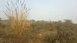 In 2010, a group of concerned and passionate citizens called 'iamgurgaon',[6] consisting of Latika Thukral,[7] Swanzal Kak Kapoor, Aman Kumar, Gayatri Singh and the Late Atal Kapoor took up the initiative of ecological restoration of the Aravali Biodiversity Park, Gurgaon. They hired ecological restoration practitioner Vijay Dhasmana to restore the damaged landscape in 2011. Thereafter the vision was revised to bring back the original Aravali forest vegetation of the region. Seedlings of about 200 native plant species were raised from seeds collected from remnant natural forests and vegetated areas in Mangar, Nahargarh, and Kumbhalgarh in the Aravalli Range. Invasive alien species such as Prosopis juliflora were carefully removed and native plants of the Aravalli Range were planted. These included native species such as Boswellia serrata (local name: salai), Sterculia urens (kullu), Anogeissus pendula (dhau), Holarhenna pubscens (indrajao), Mitragyna parvifolia (kaim), Wrightia tinctoria (khirni), Commiphora wightii (guggul), Helicteris isora (marodphali), Albizia odorotissima (kala basa), Mallotus philippensis (sinduri) and many others. A large part of seedlings planted were watered through drip irrigation. The Park also maintains a variety of habitats including grasslands and a seasonal pond near an old quarry site.[3]