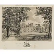 The manor house, which originally stood on the site, was occupied by the Bullock family from the early 13th century.[1] It was acquired by Edmund Standen in 1589 and passed to his son, William Standen, who rebuilt the house in Jacobean style in 1603.[1] A stable block was added in 1654.[2] The manor house was sold to Pelsant Reeves, a Master in Chancery, in 1730 and it remained in the Reeves family until George Dawson, a descendant, demolished it in 1832.[1] George Dawson commissioned a new hall in 1837 but sold it to Sir John Conroy, Controller of the Household of the Duchess of Kent, in 1842.[1] The new hall was bought by Thomas Hargreaves, a businessman who became High Sheriff of Berkshire, in 1855 and it remained in the Hargreaves family until 1926.[1] The hall was then bought at auction by the Allsebrook family.[3] It was requisitioned by the Royal Air Force during the Second World War and then acquired by the University of Reading after the war: the university demolished it in 1955.[1]
