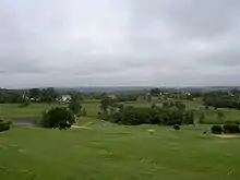 is registered as an historical monument.[26] It was rebuilt in 1900. The central body of the building, flanked by two wings, is surmounted by a glass roof which illuminates the interior of the building. It stands on a small hill in the middle of a small park planted with oaks.