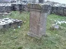 Municipium Dardanorum[6] or Municipium Dardanicum[7] is an archaeological site situated approximately 27 km (17 mi) in the north of Mitrovica, localized in the village of Soçanica, Municipality of Leposaviç. First researches of this archaeological site began in 1956. The researches were organized by the Museum of Kosovo. After preliminary researches, that were done in 1959 too, began the first diggings in a part of this location. Further researches and diggings continued in the period of 1960–1965.[8] During the researches were included all the parts of the city and two necropolis that were found so far. During 1956 researches, were discovered fragments of the constructive settlement, named "Trojan-grad" or "Anina" that later was verified that actually was part of the forum. Municipium Dardanorum archaeological site stretches approximately 30 hectares, where in the eastern part of this settlement were discovered a forum, horrea, urban basilica, features of the Roman bath, details of auxiliary objects, vessels made of ceramics, and the northern necropolis. The vessels made of ceramics such as plates and pots, have a very rough fracture, with the edges turned sideways. These vessels are decorated with simple waves of lines and fingerprints applied to the cutting bar.[9] The discovered archaeological material and the overall results indicate that, Municipium Dardanorum, primarily existed as a prehistoric settlement, and during the period from the last decades of the 1st century, until the first part of the 4th century AD, continued to develop and become a typical ancient Roman town.[10]
