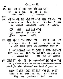 In Ancient Mesopotamia, a foundation deposit of the Akkadian Empire ruler Naram-Sin (ruled circa 2200 BCE) was discovered and analysed by king Nabonidus, circa 550 BCE, who is thus known as the first archaeologist.[9][10][11] Not only did he lead the first excavations which were to find the foundation deposits of the temples of Šamaš the sun god, the warrior goddess Anunitu (both located in Sippar), and the sanctuary that Naram-Sin built to the moon god, located in Harran, but he also had them restored to their former glory.[9] He was also the first to date an archaeological artifact in his attempt to date Naram-Sin's temple during his search for it.[12] Even though his estimate was inaccurate by about 1,500 years, it was still a very good one considering the lack of accurate dating technology at the time.[9][12][10]