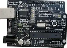 Several Arduino-compatible products commercially released have avoided the "Arduino" name by using "-duino" name variants.[61]