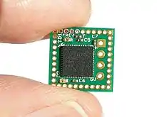 | Arduino Fio[34] | ATmega328P[25] | 8 MHz | minimal | 66.0 mm × 27.9 mm [ 2.6 in × 1.1 in ] | XBee Serial | 3.3 V | 32 | 1 | 2 | 14 | 6 | 8 | March 18, 2010[35] |  Includes XBee socket on bottom of board.[34] | |||