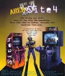 Area 51: Site 4 is a light gun arcade game developed by Atari Games and released in 1998. It is a sequel to the original Area 51,[1] picking up where that game left off. Though the graphics have been improved, they rely on the same FMV streaming technology as the original, and the gameplay remains largely the same as the original game.