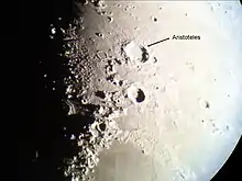 Aristoteles is a lunar impact crater that lies near the southern edge of the Mare Frigoris and to the east of the Montes Alpes mountain range. It was officially named in 1935 after the ancient Greek philosopher Aristotle by the International Astronomical Union, using the classical form of his name.[1]