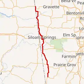 | Arkansas | Benton | Siloam Springs | 0 | 0.0 | Southern terminus | |
