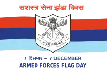 The Armed Forces Flag Day or the Flag Day of India is a day dedicated to India towards collection of funds from people of India for the welfare of the Indian Armed Forces personnel. It has been observed annually in India on December 7 since 1949.[1] Over the years, it has become a tradition to commemorate this day as an honour to the soldiers, sailors and airmen of India.