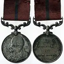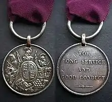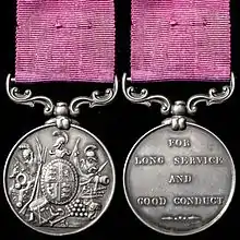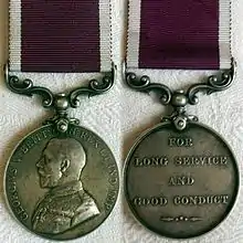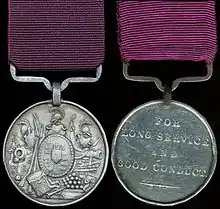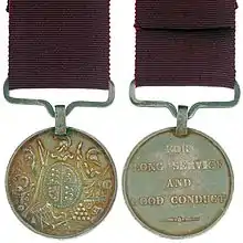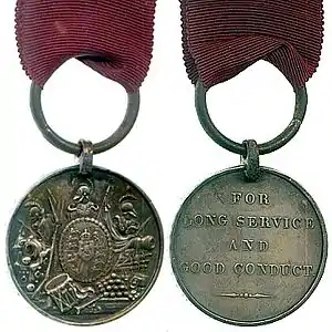 The Army Long Service and Good Conduct Medal was instituted by King William IV in 1830, for award to soldiers for long service and good conduct. It was the first non-campaign medal of the British Army.[1][2][3]