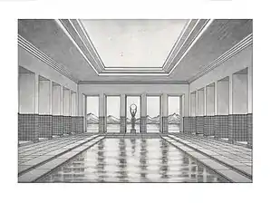 In 1930 he moved, therefore, to the capital, and worked in the important studio of Angiolo Mazzoni, engineer of futurist formation and official of the dicastery of communications, author of numerous postal buildings and railway stations, now of traditional forms, now more markedly modern. With Mazzoni he had already collaborated on the construction site of the seaside Holiday Camp Rosa Maltoni Mussolini for the sons of postmen and railwaymen, located in Calambrone on the coast between Pisa and Livorno.