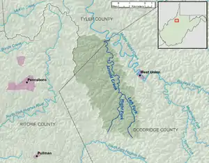 | 12 | Left Fork Arnold Creek[1] | Arnold Creek | 4.9 miles (7.9 km) | 39.271194°N 80.807328°W | 39.212863°N 80.787882°W |
