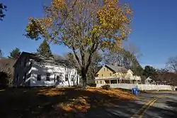 Arnold Mills Historic District is a historic district encompassing a modest 19th-century mill village in eastern Cumberland, Rhode Island. The district lies along the Nate Whipple Highway (Rhode Island Route 120) and Sneech Pond Road, south of the Arnold Mills Reservoir. Sneech Pond Road was formerly the major east-west highway through the area prior to the construction of the Nate Whipple Highway in the 1960s. The Arnold Mills village is in part bisected by Abbott Run, the stream which serves as the outlet of the reservoir; Sneech Pond Road crosses the run on an early 20th-century steel Pratt pony truss, now closed to vehicular traffic. The houses along this road generally date from the late 18th to mid-19th century, and mainly reflect Federal and Greek Revival styling. The most prominent structure in the district is the Arnold Mills United Methodist Church, located at the western end of the district on Nate Whipple Highway; it was built 1825-27 and remodeled in 1846.[2]