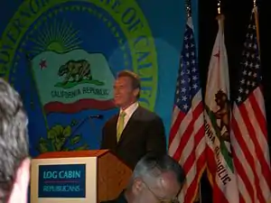 On September 29, 2005, Governor Schwarzenegger vetoed AB 849, a bill that would have legalized same-sex marriage in California.[8][11] Also that same day, he signs Civil Rights Act of 2005 into law, which expanded the Unruh Civil Rights Act to further prohibit that discrimination on the basis of sex/gender, sexual orientation, and marital status in public accommodations.[8][12] Also that same day, he signs SB 565 into law, which, commencing with the lien date for the 2006-07 fiscal year, exclude from the definition of "change in ownership" any transfer of property between registered domestic partners and would provide that, notwithstanding Section 2229 of the Revenue and Taxation Code, no appropriation is made and the state shall not reimburse local agencies for property tax revenues lost by them pursuant to the bill.[13] Also the same day, he signed SB 973, which revises and recast those provisions to require the form to include the signature of the member's spouse or domestic partner, as specified, and be received at the system's headquarters, as provided, and for purposes of the provision of certain postretirement death benefits, that a surviving domestic partner shall be treated in the same manner as a surviving spouse if the domestic partner is in a registered domestic partnership that meets specified criteria or if the retired member and his or her domestic partner, who are currently in a registered domestic partnership, sign an affidavit that makes specified statements. Because moneys in the Public Employees' Retirement Fund would be used for a new purpose, this bill would make an appropriation, and revise and recast the provisions described above in connection with the extension of the rights and duties of marriage to domestic partnerships that occurred on and after 2005. Because moneys in the Public Employees' Health Care Fund would be used for a new purpose, this bill would make an appropriation and entitle a retired member and his or her domestic partner to the same entitlements as described above, if specified criteria are satisfied, including providing an affidavit signed by the member and domestic partner under penalty of perjury relative to the member's service retirement effective date or disability retirement date and expand those provisions to provide that a conservatee retains the capacity to enter into a domestic partnership, as specified.[14] Also that same day, he signed AB 1586 into law, a prohibit gender-based discrimination in health insurance.[8][15] Also that day, he vetoed AB 723, which would have required the State Board of Education (SBE), as a component of reviewing curriculum frameworks, and after consulting civil rights organizations that relate to discrimination on the basis of disabilities, gender, nationality, race or ethnicity, religion, and sexual orientation, to integrate instruction on intergroup relations and tolerance into existing curriculum frameworks.[8]