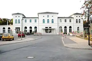 The Arnsberg (Westphalia) station is a station on the Upper Ruhr Valley Railway (German: Obere Ruhrtalbahn) in the German state of North Rhine-Westphalia. It was opened in Arnsberg with the construction of the line in 1870/71.[5] The station building was built in 1869 in the Renaissance Revival style.[6] The station building is still used for passenger traffic. Some of the space in the building is used by various social groups and institutions.