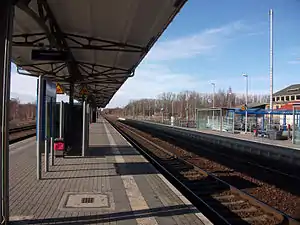 Arnsdorf (German: Bahnhof Arnsdorf (b Dresden)) is a railway station[1] in the town of Arnsdorf, Saxony, Germany. The station lies on the Görlitz–Dresden railway and Kamenz–Pirna railway. The section from Arnsdorf to Dürrröhrsdorf, which used to be part of Kamenz–Pirna railway, was closed in 2007.