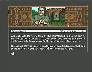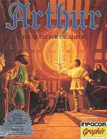Arthur: The Quest for Excalibur is an illustrated interactive fiction video game written by Bob Bates and published by Infocom in 1989. It was released for the Apple II, Amiga, Macintosh, and IBM PC compatibles. Atypically for an Infocom product, it shows illustrations of locations, characters and objects within the game. It is Infocom's thirty-fourth game and is the second of two Infocom games developed by Challenge using Infocom's development tools.[1]