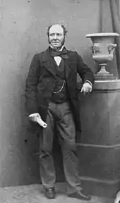 Kinnaird sat as Member of Parliament for Perth from 1837 to 1839 and again from 1852 to 1878 for the Whigs.[4] He was an avid supporter of Prime Minister Henry John Temple, 3rd Viscount Palmerston, which led to him being nicknamed "Palmerston's shadow".[1] During his time in office, he was known for his desire to seek more representation for Scotland within Parliament.[5] In 1878 he succeeded his elder brother in the Scottish lordship as well as in the barony of Kinnaird, and took his seat in the House of Lords.[6]