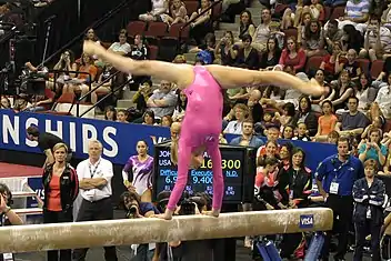 The balance beam existed as early as the 1880s in the form of a "low beam" close to the floor.[29] By the 1920s, the beam was raised much higher due to Swedish influence on the sport.[29]