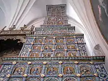 The interior is one big Gothic hall. Since 1531 it has been completely redecorated - the walls have been covered with wainscot and friezes of mythological and historical character. The richly ornamented furniture and numerous paintings add to the splendour of the hall. The most famous ones are, among others, the works by anonymous artists from the late 15th century - Siege of Marienburg, The Ship of the Church, Orpheus among animals by Hans Vredeman de Vries from 1596 and Last Judgment by Anton Möller. The last painting caused much controversy, as the artist has used the scenery of the city and depicted some significant figures of the period as allegorical characters, such as Pride or Faithlessness. The hall was decorated not only with paintings but also tapestries, ship models, armours, coats of arms, or a cage with exotic birds. The other interesting decoration is the 11-metre high furnace made by Georg Stelzner between 1545-1546. It is covered with 520 tiles[14] depicting the greatest European leaders, both the Protestants - supporters of the Schmalkaldic League, and the Catholics, among which are portraits of Isabella of Portugal and Charles V.