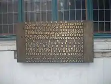 Another building was probably built in 1379. Its traces were probably found during the archeological excavations in 1991.[10] This building of the Court burnt down in 1476. It was reconstructed few years later, and in 1552 a new façade was constructed which was once more rebuilt in 1617 by Abraham van den Blocke in the style of Dutch Mannerism.[11] The building was adorned with statues of antique heroes (Scipio Africanus, Themistocles, Marcus Furius Camillus and Judas Maccabeus), allegories of strength and justice above and the statue of Fortuna on the gable. Medallions with busts of King of Poland Sigismund III Vasa and his son Władysław IV Vasa, who was a prince at that time, were placed on each side of the portal.