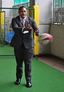 In his university times, during the rugby off-season, he worked part-time at a farm-house and appeared at the Nippon Television variety show The! Tetsuwan! DASH!!.[5]