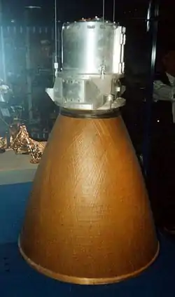The LMAE traces its origin to the earlier Bell Aerosystems engines (8096, 8247) used in the RM-81 Agena, the rocket upper stage and satellite support bus developed by Lockheed initially for the canceled WS-117L reconnaissance satellite program.[2] The Agena served as an upper stage for several defense, intelligence, and exploration programs: SAMOS-E, SAMOS-F (ELINT Ferret) and MIDAS (Missile Defense Alarm System) military early-warning satellites, Corona photo intelligence program, and the Ranger and Lunar Orbiter lunar probes.