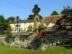 ![]() War memorial and public green with neighbouring houses. | |