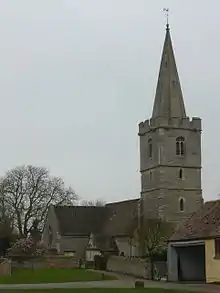 The larger, more modern, part of the village spreads out from the village green situated on higher ground about half a mile to the Northwest. Near the Green is the village school and the former Queens Arms public house, now a private residence, with the centre of the village with its Memorial Hall and Post Office shop a couple of hundred yards further up the hill.