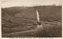 After an order under the Light Railways Act that had been obtained in 1918 to build a standard gauge railway between the Midland Railway station at Stretton and Ashover, was not proceeded with because the cost was too high, in 1920 Colonel H. F. Stephens proposed building the railway to 2 ft (610 mm) gauge. Construction started in 1922 and the railway opened to goods traffic in 1924.[1] The formal opening to passenger traffic took place in March 1925. Although the line was successful at first, road competition traffic decline and all passenger services were withdrawn in 1936.
