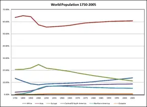 China and India alternated in being the largest economies in the world from 1 to 1800 CE. China was a major economic power and attracted many to the east,[12][13][14] and for many the legendary wealth and prosperity of the ancient culture of India personified Asia,[15] attracting European commerce, exploration and colonialism. The accidental discovery of a trans-Atlantic route from Europe to America by Columbus while in search for a route to India demonstrates this deep fascination. The Silk Road became the main east–west trading route in the Asian hinterlands while the Straits of Malacca stood as a major sea route. Asia has exhibited economic dynamism (particularly East Asia) as well as robust population growth during the 20th century, but overall population growth has since fallen.[16] Asia was the birthplace of most of the world's mainstream religions including Hinduism, Zoroastrianism, Judaism, Jainism, Buddhism, Confucianism, Taoism, Christianity, Islam, Sikhism, as well as many other religions.
