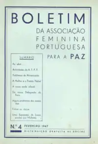 The Associação Feminina Portuguesa para a Paz (Portuguese Women's Association for Peace - AFPP) was a female pacifist association created in 1935 and dissolved by the Esdado Novo dictatorship in 1952. It had active groups in Lisbon, Coimbra and Porto. Although declaring itself apolitical, many of its members were anti-fascists opposed to the Estado Novo. Its activities involved providing support to prisoners of war, and it organized lectures, exhibitions, and other events as a way to disseminate the principles of World Peace. In the last decade of its existence, it became increasingly opposed to the Government, in response to increased repression (general and, in particular, against women's movements). The Association published an occasional Bulletin[1] and had a children's choir, directed by Francine Benoît.[2]